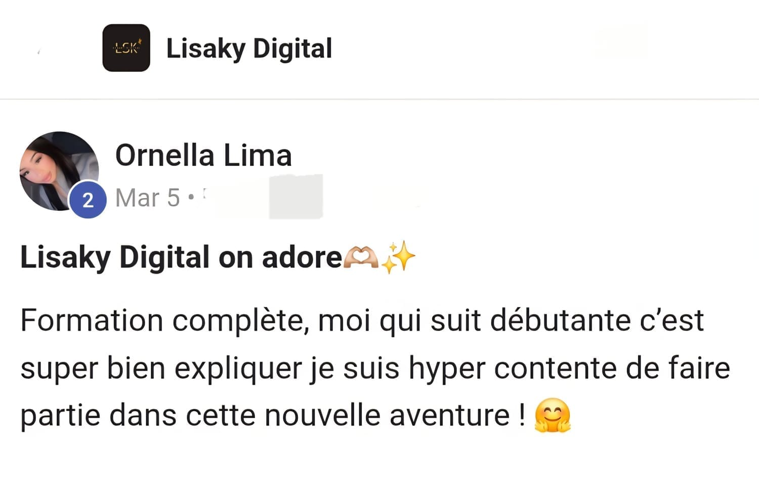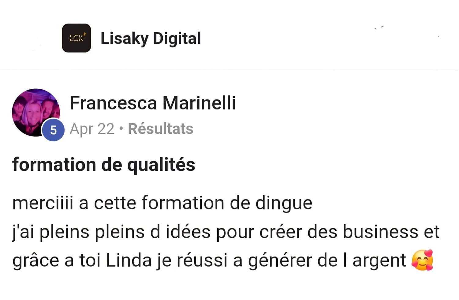 Tu peux également faire de l'affiliation ou proposer tes services en marketing, etc. Il y a énormément de moyens pour gagner de l'argent avec la Lisaky Digital