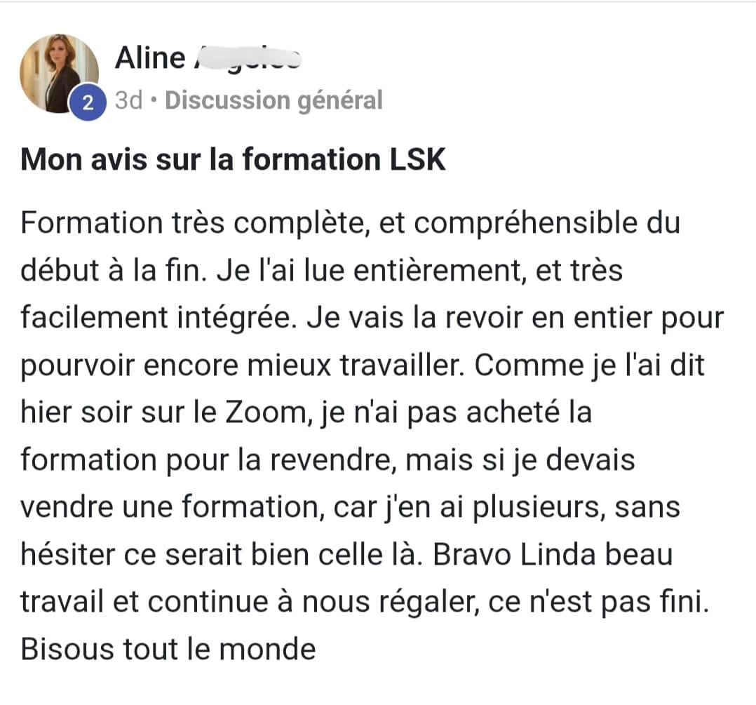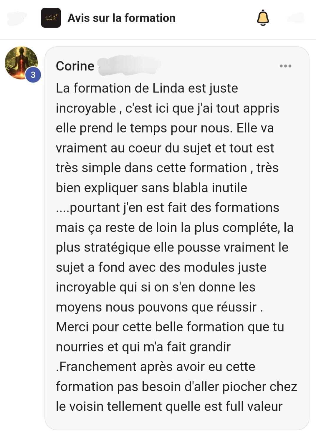 Chaque semaine, il y a un live avec Linda, la créatrice de la formation, directement pour répondre à tes questions.